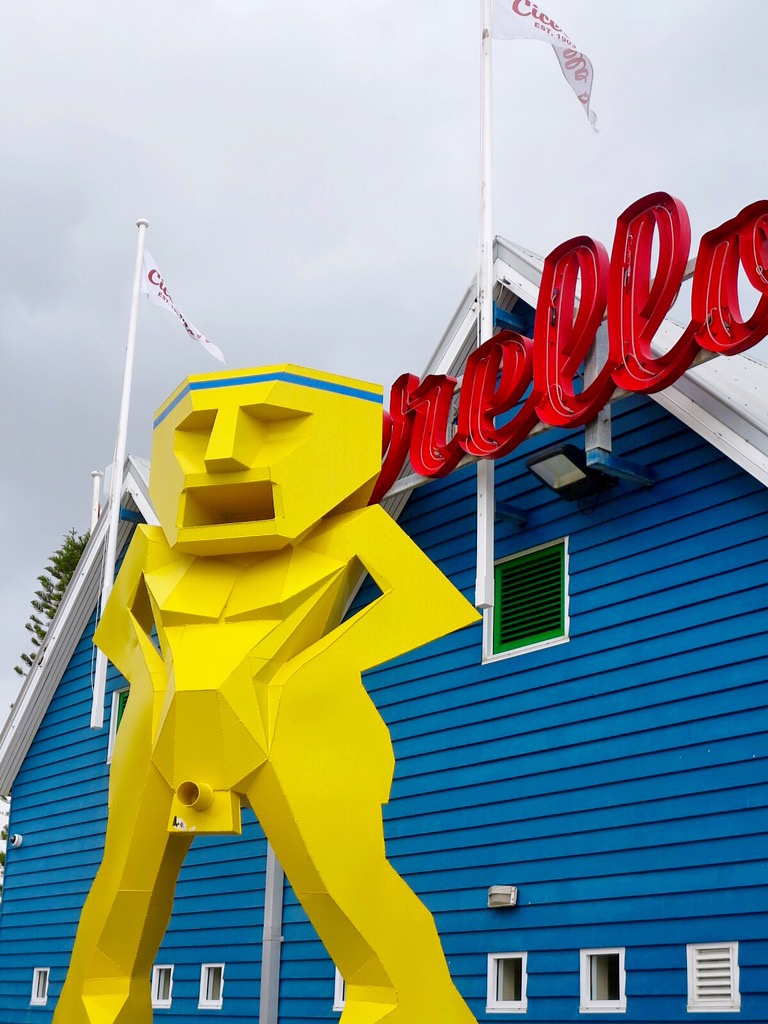 As we left Cicerello’s Susan pointed to the big yellow statue outside. ‘Is it just me or is that statue rude?’