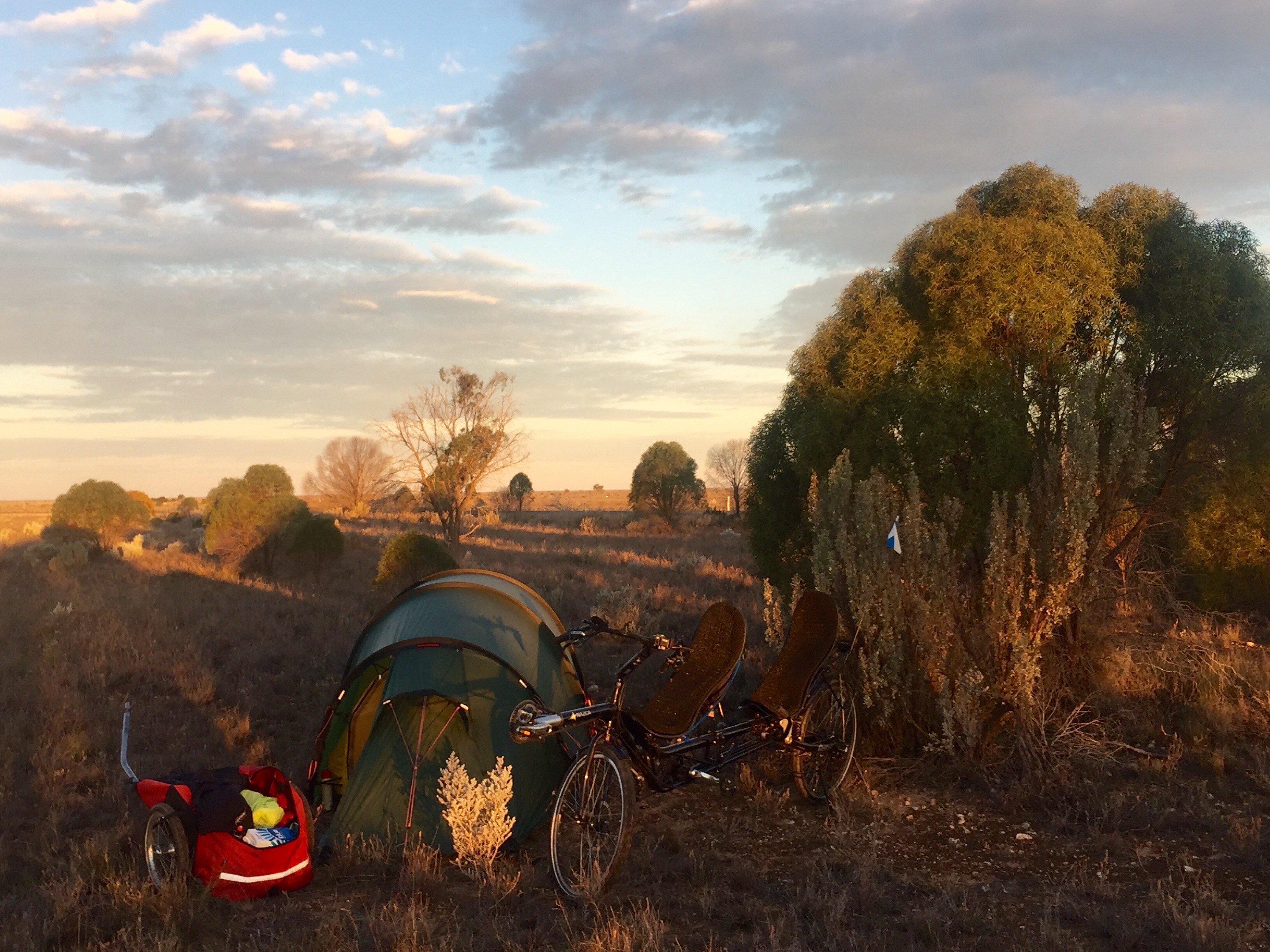 It was 181km of nothingness between Balladonia and Caiguna with dusk around 1630hrs. It was never going to be a one day journey – the wind, the weight and the continual small incline meant steady but gradual progress.