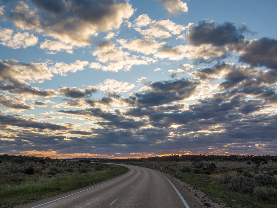 Dusk on the road is a quiet and peaceful time (when I’m not shouting at the Roos) when we have the road to ourselves.