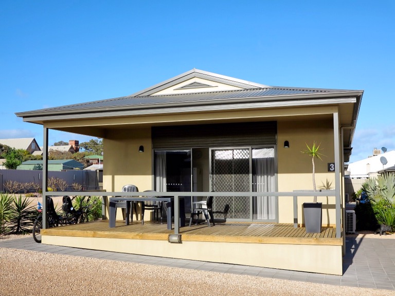 From Ceduna we headed southwards to Streaky Bay – a slight detour but the wind was blowing that way so why not! After two rest days in Ceduna and a following wind you think we would fly along. Well not when you’re our age – two days is just enough time for all the joints to start seizing up and it was like putting two tortoises on a bike – it didn’t look nice or smooth moving. Now before Susan reads this I would like to add that I was actually the only one who looked like a tortoise! All that said, the two tortoises got there (110km) and came across a lovely motel (run by a Scotsman). Here is a picture of our cabin to show we don’t always have to rough it.