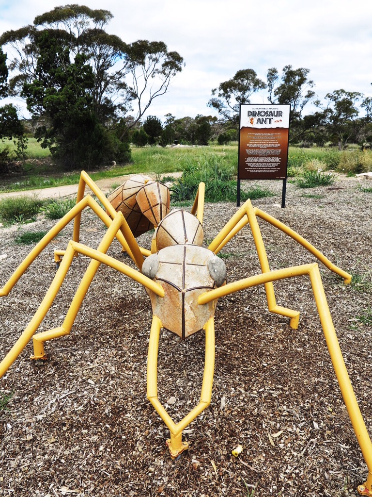 Eventually I realise there is nobody around to give me a sympathy and we are on a road alone in the wilderness. So I get back on the bike and miraculously mange to pedal onto our next destination at Minnipa. On route we passed through Poochera which is famous for the discovery of the Dinosaur Ant.