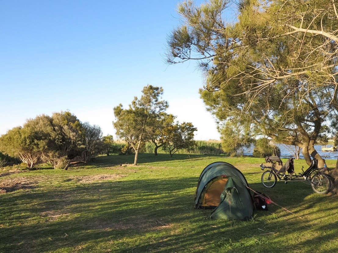After 96km we reached Meningie and because our motel of choice was full with a touring party of charity cyclists, we decided to camp. Thankfully, our campsite was a bit of a change from our usual bush camps.