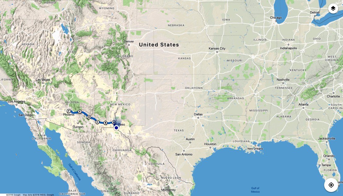 Over the next week or so we head towards Phoenix, Arizona, passing briefly through New Mexico en route.