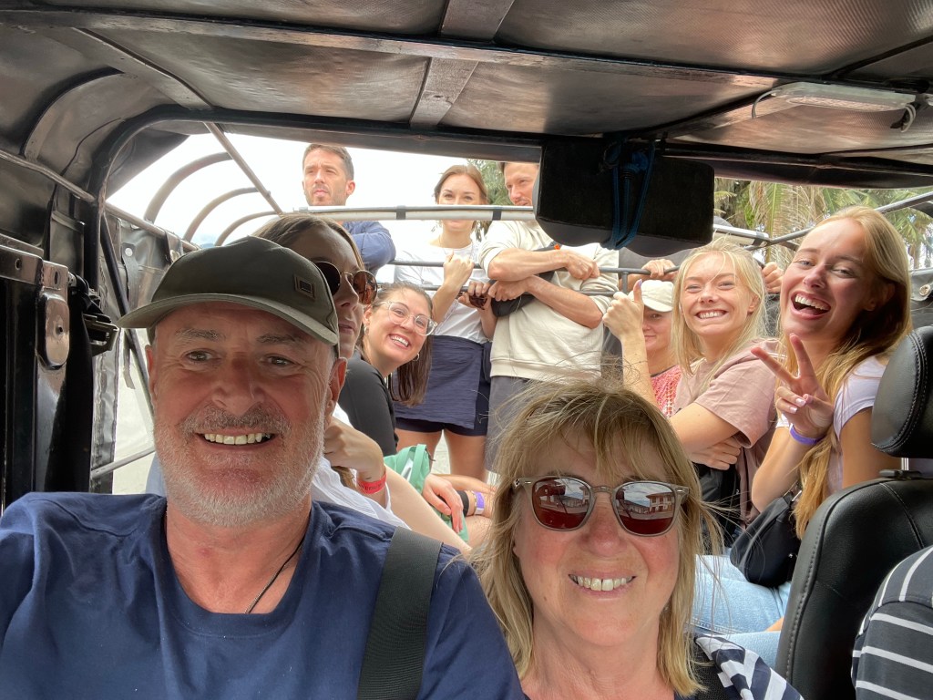 The small coffee plantation was interesting to a point. We picked coffee beans, looked at the processes and tasted some very flavorful coffee. Then it was back to the jeep. This time, seat allocation was more of a free for all. Susan ended up in a comfortable pensioner front seat whilst I found myself in the back with the ‘chicas’. Don’t know how that happened. It was kind of the only seat I could see once I had pushed everyone out the way. As the old adage says ‘you can’t keep old hostel people down’!