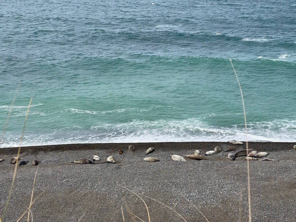 Yup, you can’t tell they’re elephant seals from that distance. And it gets worse! The big buggers just lay around dozing pretending they were dead! I waited 20 minutes and nothing happened. Nobody appeared with a coloured ball for them to play or a hoop to jump through. They didn’t clap with their flippers for fish. Nothing. Next time I’m going to Seaworld to see real wildlife action!