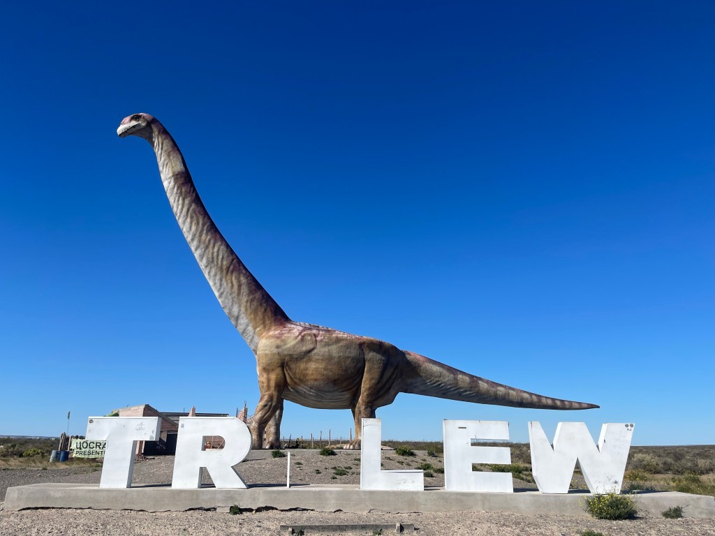 Interesting story about the missing ‘E’ – it was apparently blown off and disappeared in the afternoon high winds two days previously. We can testify the winds were strong cause that’s about the same time we passed this statue on route to Puerto Madryn.
