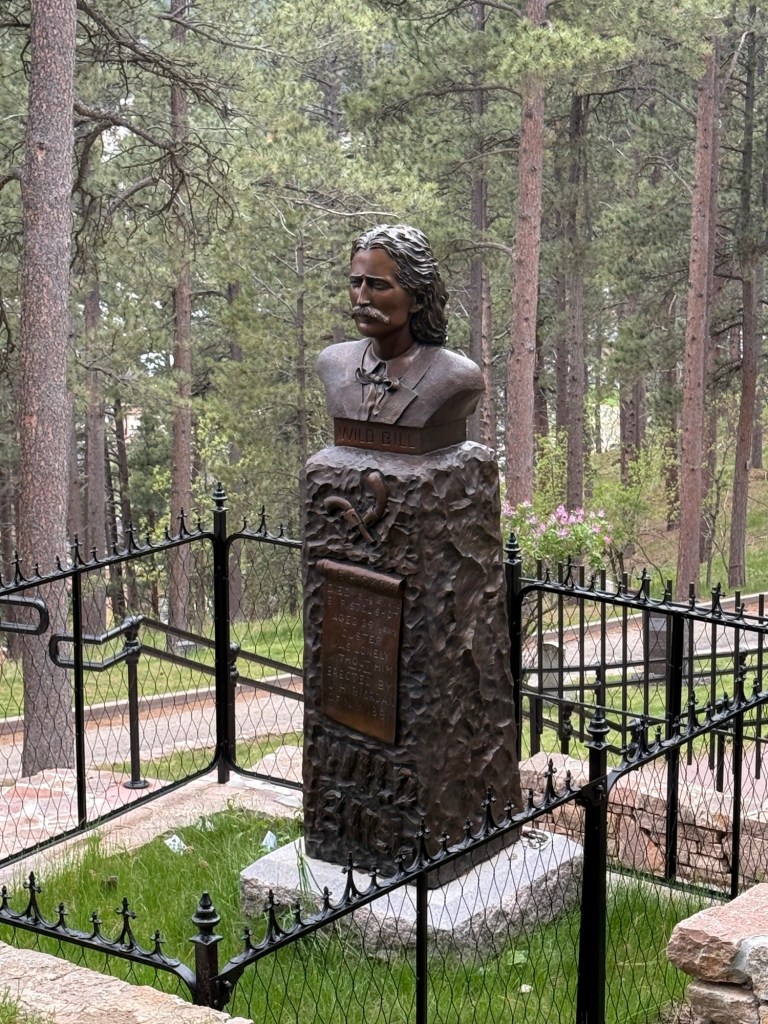 Oh the guy looking over my shoulder is Wild Bill Hickok. He was shot and killed in Deadwood in 1876 whilst playing cards. It’s rumoured the cards he was holding included two black eights and two aces – now known as the ‘dead man’s hand’.